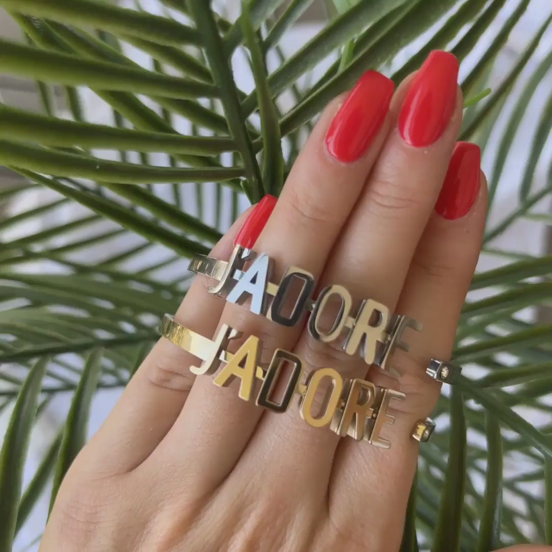 Ergänze deinen Look mit unserem "J'ADORE" Bangle, der "Samira" mit dem optisch dazugehörigem Samira Ring. Dieser lässt sich mit einem aufklappbaren Design einfach an- und ablegen. Der filigrane Schriftzug und das moderne Design machen diesen Armreif und den Ring zu einem vielseitigen Accessoire für jeden Tag.